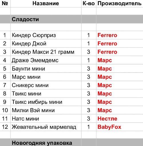 Опубликовано в Составы подарков